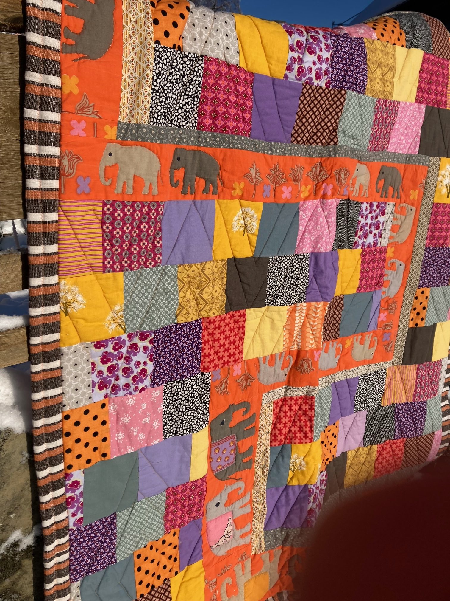 Beschreibung: Die Karawane zieht in vielen Farben vorbei! Ein Kinder Quilt fürs Bett oder als Krabbeldecke auf den Boden verwendbar!